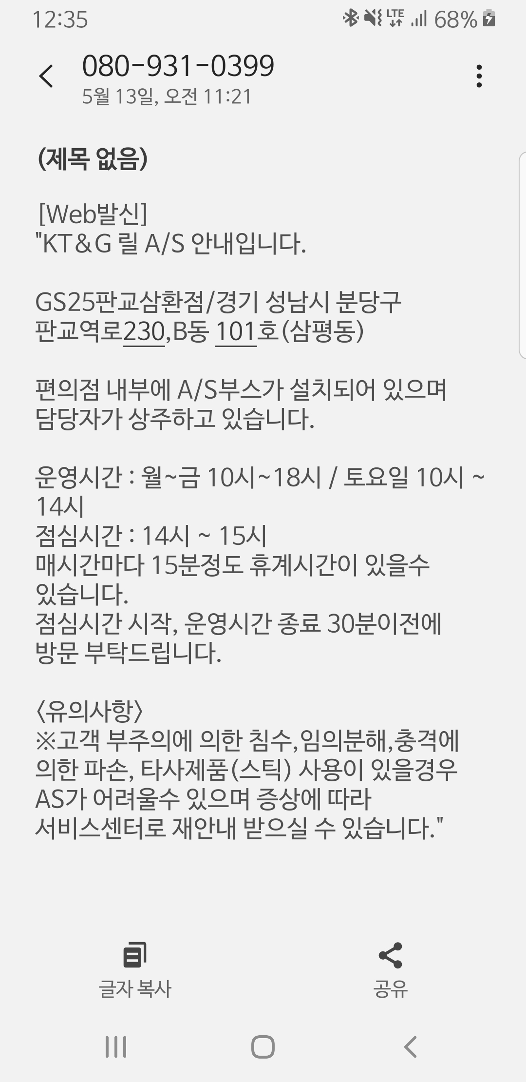 점심시간을 이용해 A/S 받으러 갔습니다.