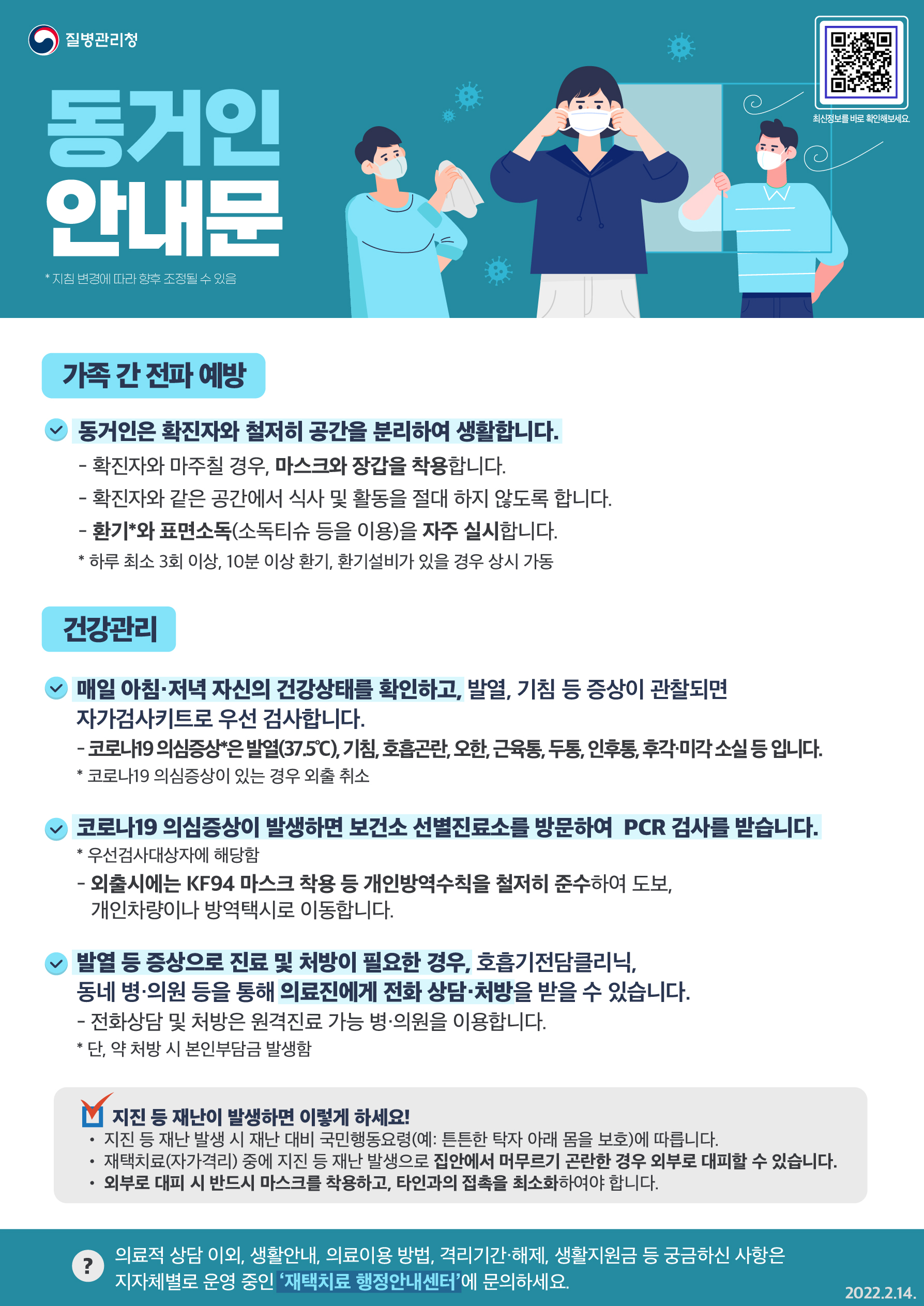 코로나19 확진자 동거인 안내문(2022.2.10)