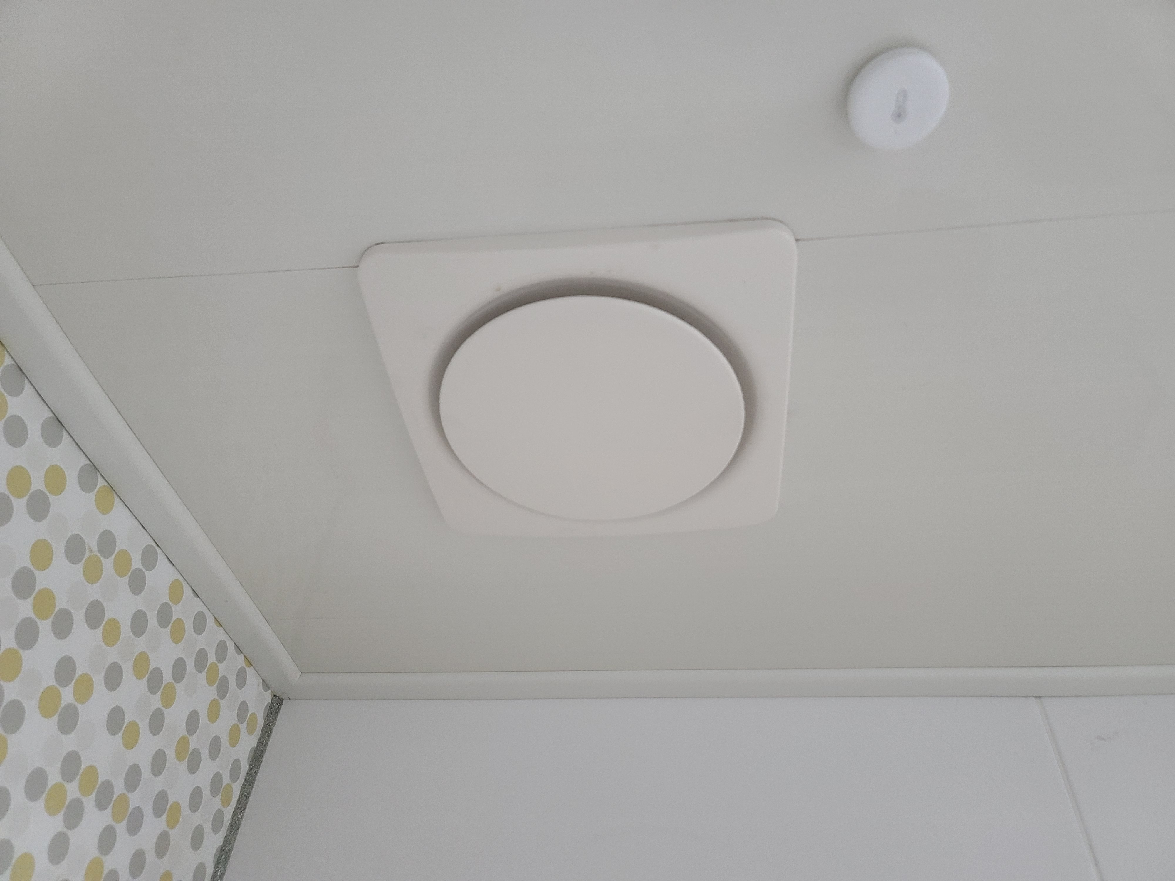 (환풍기 옆에 동그란것은 온습도 센서입니다. 화장실에 습도가 일정이상 높으면 환풍기를 자동으로 작동하게 하여 사용중입니다)
