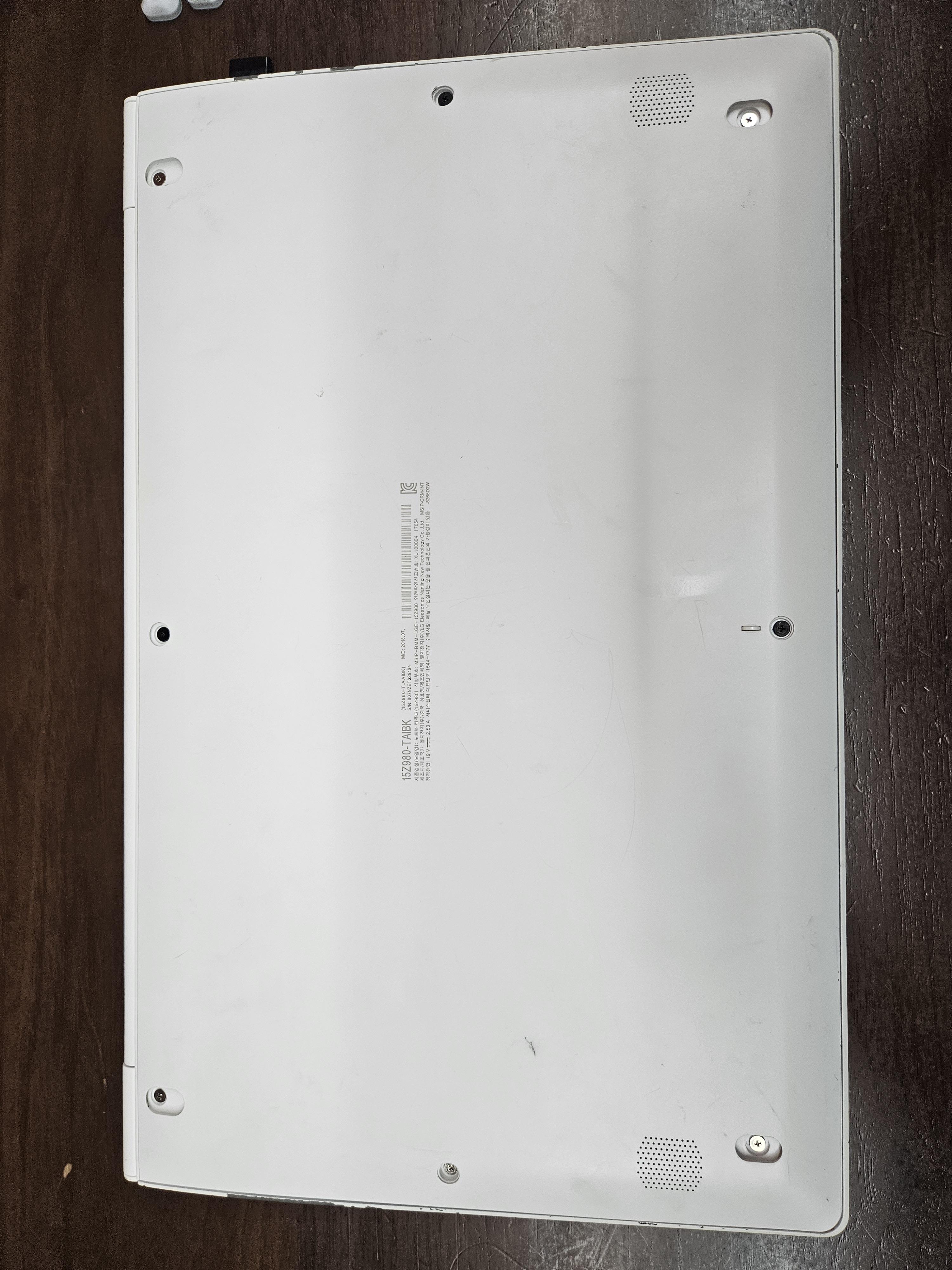 노트북 아랫부분을 보면 이렇게 스티커같이 되어있는 부분을 살포시 들어보면 +나사가 나옵니다