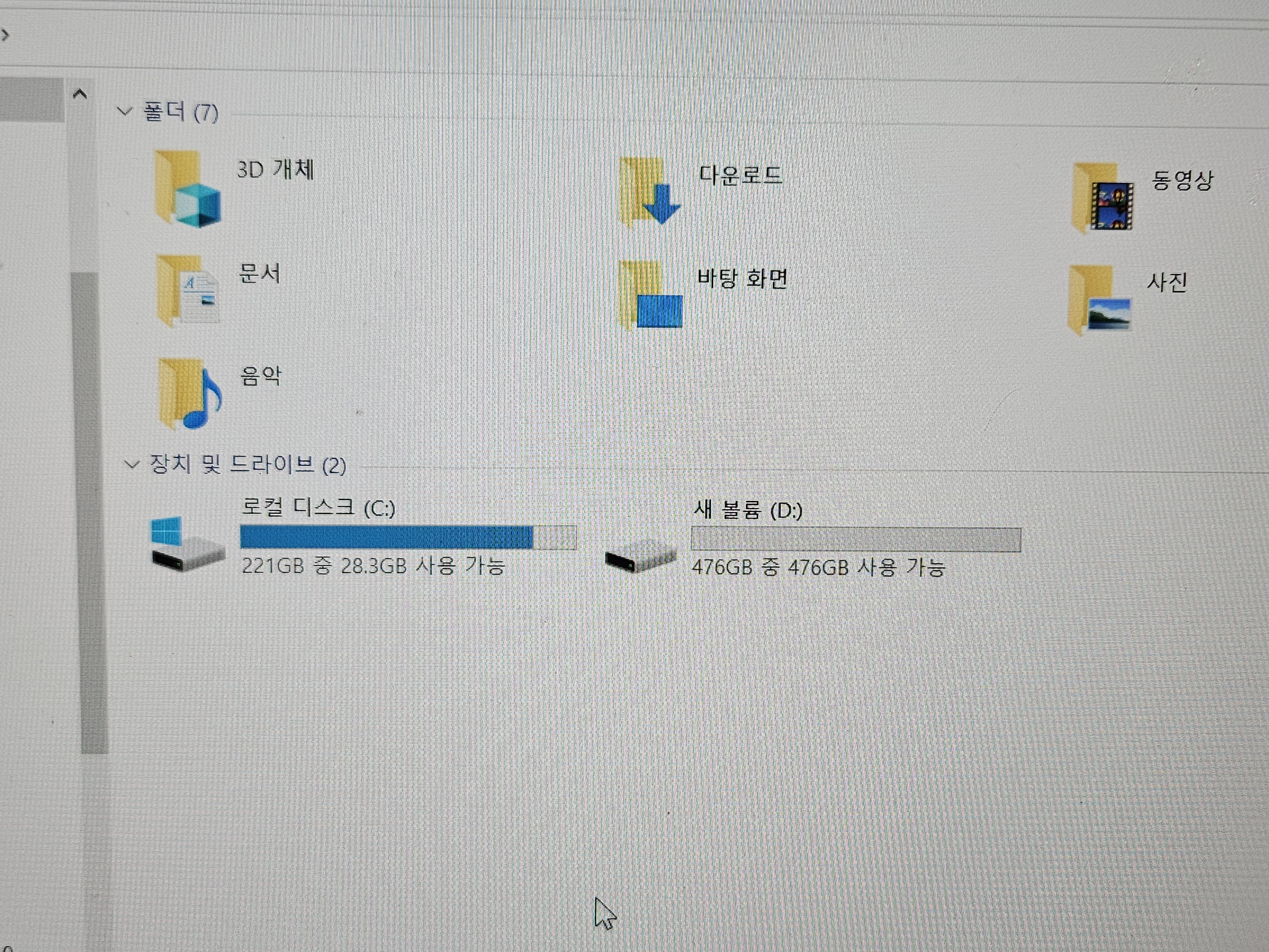 그리고 피씨를 켜보면 아직 c드라이브 밖에 표시가 되어있지 않습니다.