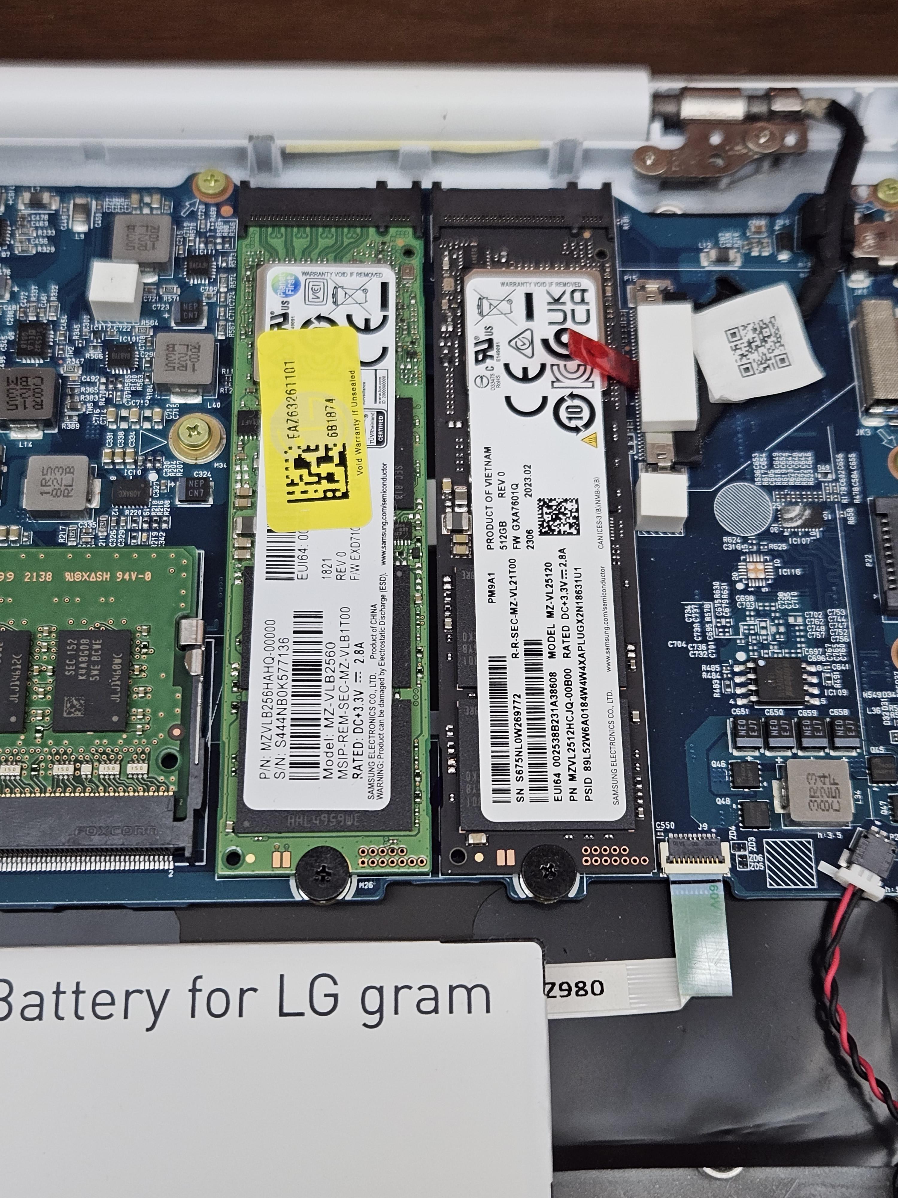 제가 가지고있는 LG그램(15Z980모델) 노트북은 ssd를 장착할수 있는 슬롯이 두개 있는 제품입니다